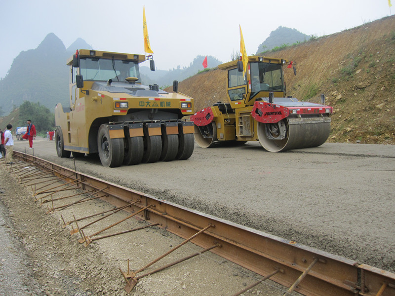 贵州六枝至六盘水高速工程,底基层、碎石基层水稳施工采用全宽幅大厚度施工工艺,采用YZ36超重吨位超大激振力全液压自行式单钢轮振动压路机进行碾压,松铺厚度达到46CM,仅碾压三遍,平整度、压实度和整体强度达到并超过高速公路施工规范要求。
